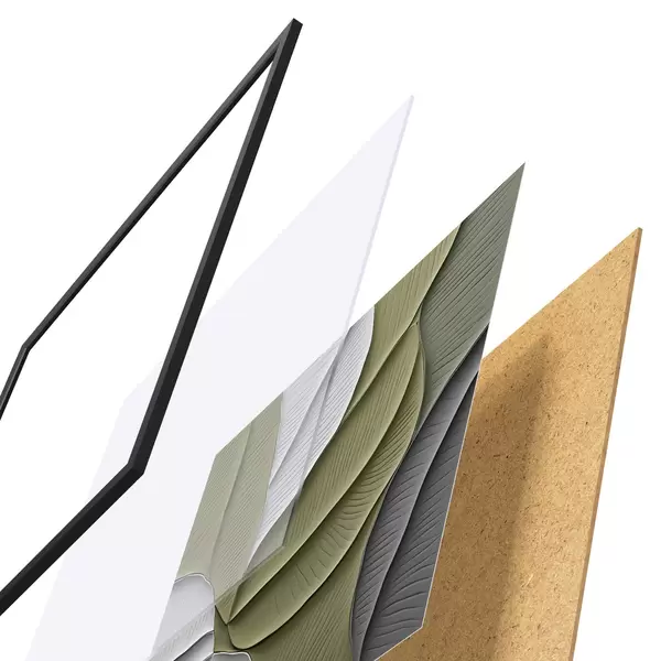 Plakát se skládá z rámu, plexiskla, tištěného obrazu a dřevotřískového podkladu. Díky úchytům na zadní straně lze plakát ihned zavěsit na zeď.