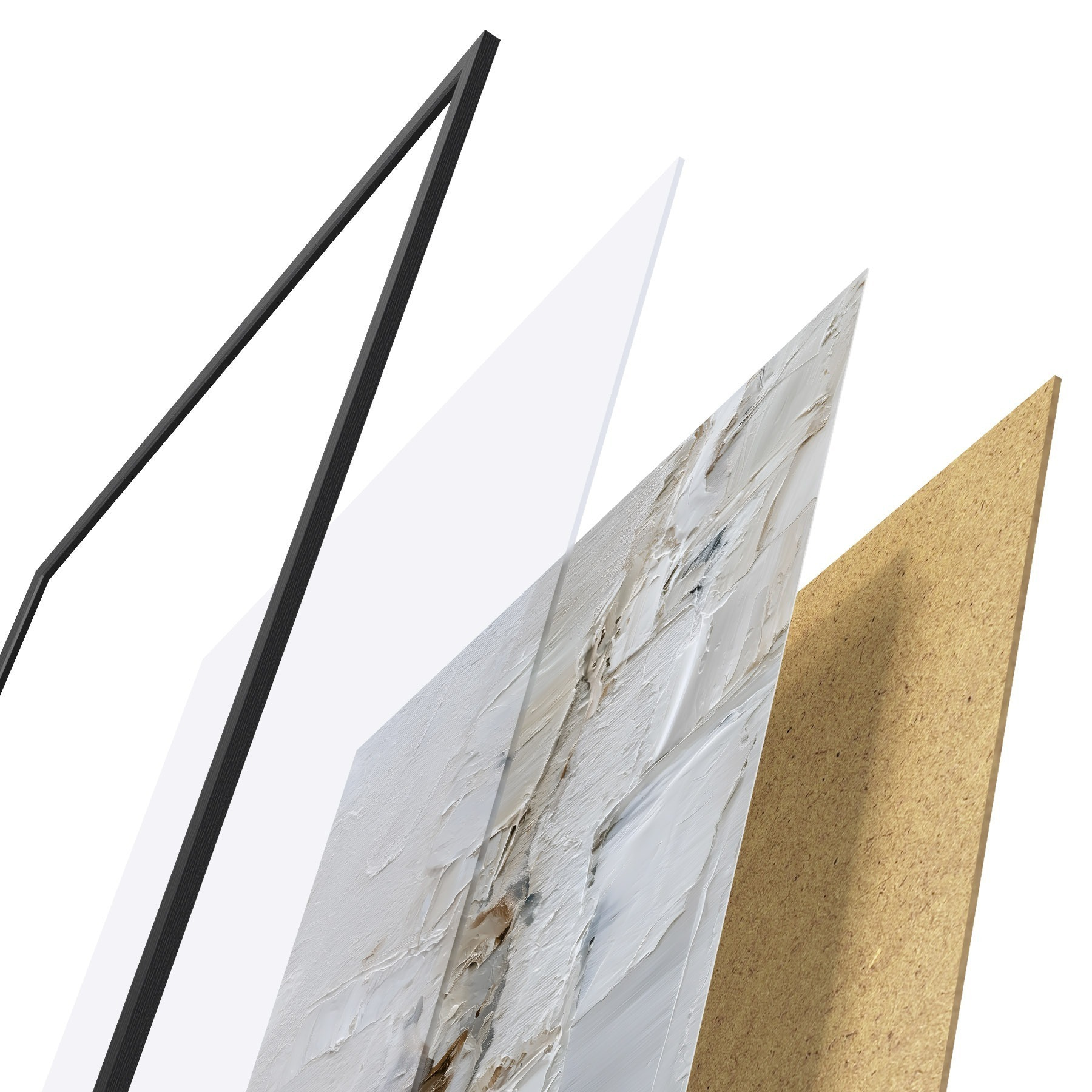 Plakát se skládá z rámu, plexiskla, tištěného obrazu a dřevotřískového podkladu. Díky úchytům na zadní straně lze plakát ihned zavěsit na zeď.