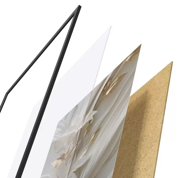 Plakát se skládá z rámu, plexiskla, tištěného obrazu a dřevotřískového podkladu. Díky úchytům na zadní straně lze plakát ihned zavěsit na zeď.