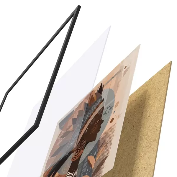 Plakát se skládá z rámu, plexiskla, tištěného obrazu a dřevotřískového podkladu. Díky úchytům na zadní straně lze plakát ihned zavěsit na zeď.