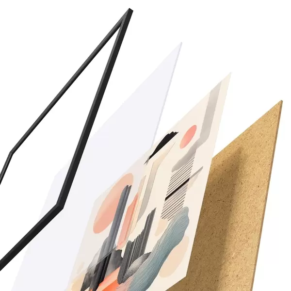 Plakát se skládá z rámu, plexiskla, tištěného obrazu a dřevotřískového podkladu. Díky úchytům na zadní straně lze plakát ihned zavěsit na zeď.