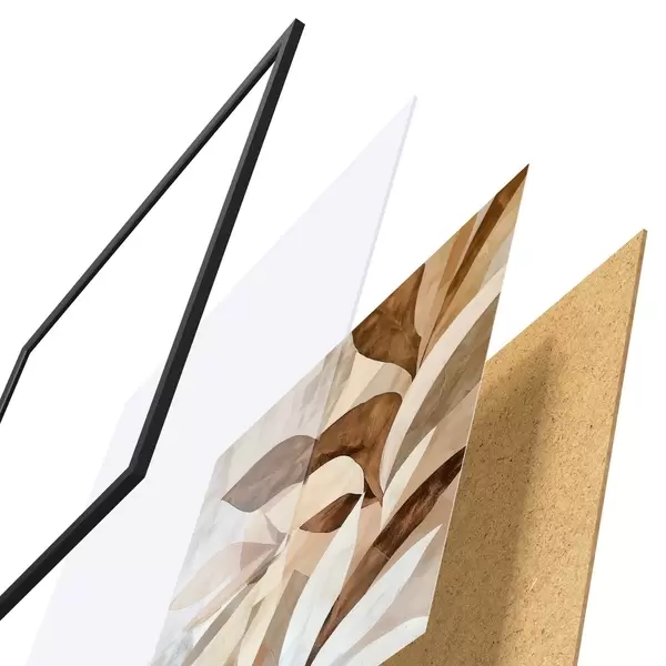 Plakát se skládá z rámu, plexiskla, tištěného obrazu a dřevotřískového podkladu. Díky úchytům na zadní straně lze plakát ihned zavěsit na zeď.