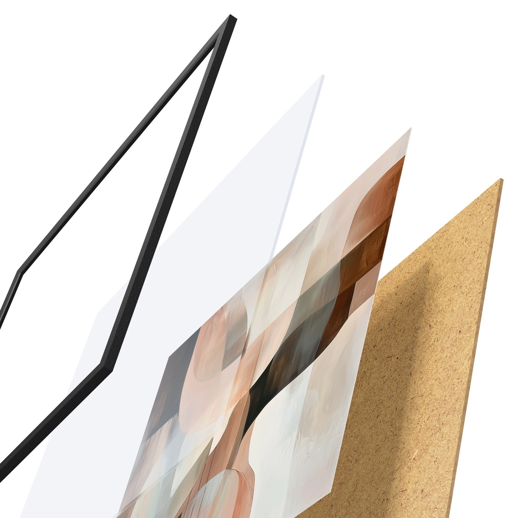 Plakát se skládá z rámu, plexiskla, tištěného obrazu a dřevotřískového podkladu. Díky úchytům na zadní straně lze plakát ihned zavěsit na zeď.