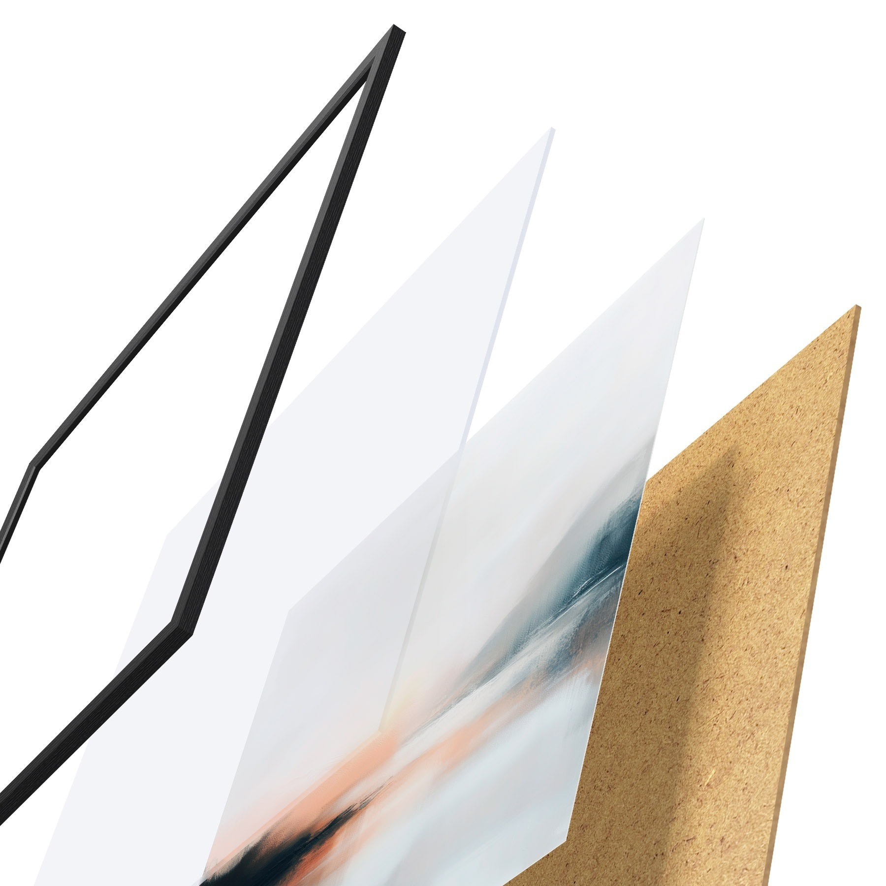 Plakát se skládá z rámu, plexiskla, tištěného obrazu a dřevotřískového podkladu. Díky úchytům na zadní straně lze plakát ihned zavěsit na zeď.