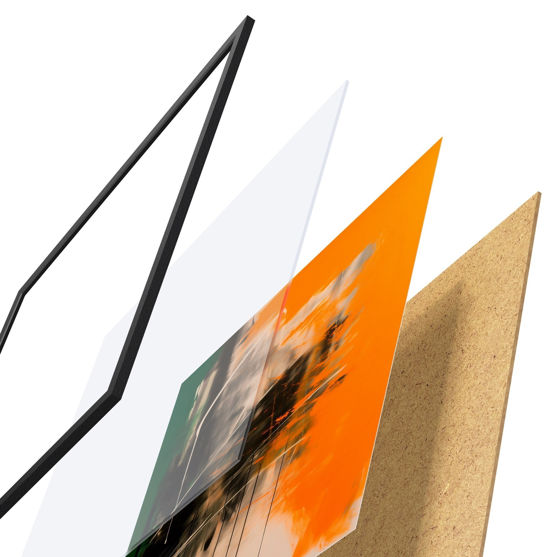 Plakát se skládá z rámu, plexiskla, tištěného obrazu a dřevotřískového podkladu. Díky úchytům na zadní straně lze plakát ihned zavěsit na zeď.