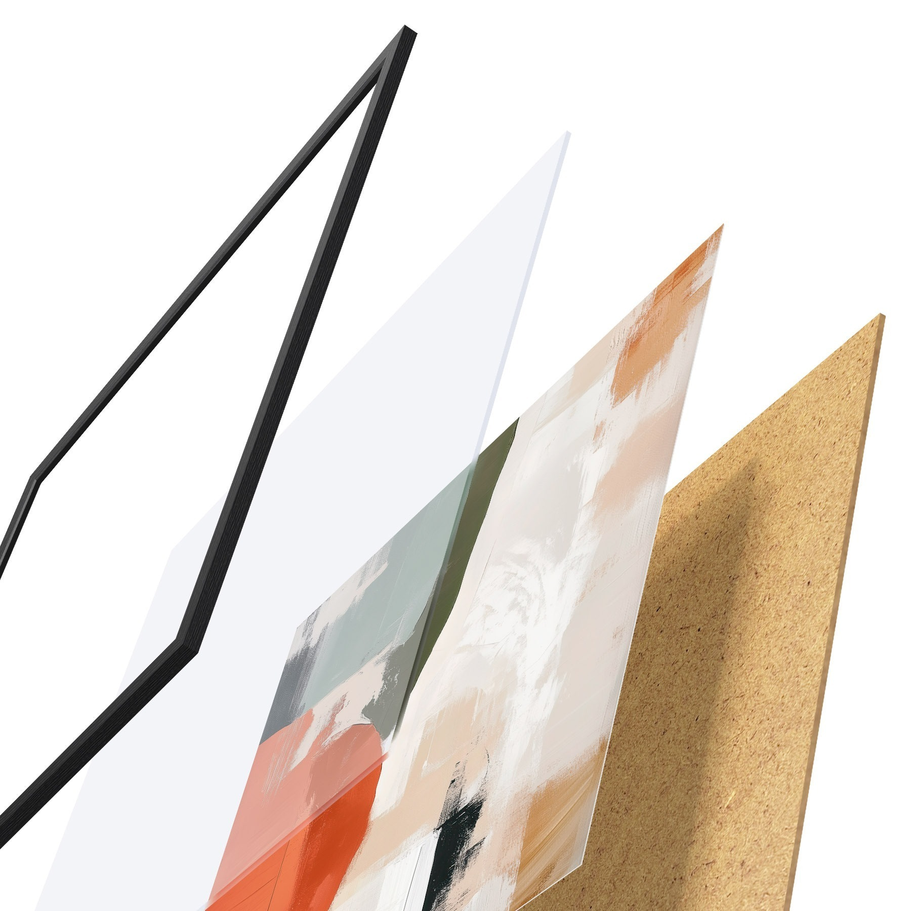 Plakát se skládá z rámu, plexiskla, tištěného obrazu a dřevotřískového podkladu. Díky úchytům na zadní straně lze plakát ihned zavěsit na zeď.