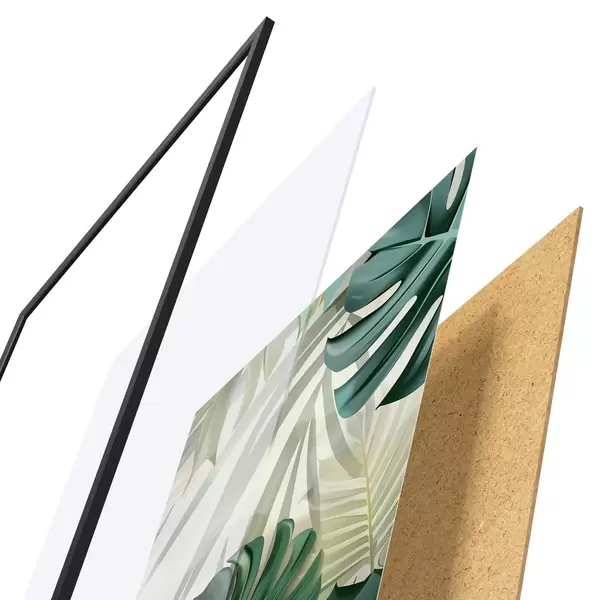 Plakát se skládá z rámu, plexiskla, tištěného obrazu a dřevotřískového podkladu. Díky úchytům na zadní straně lze plakát ihned zavěsit na zeď.