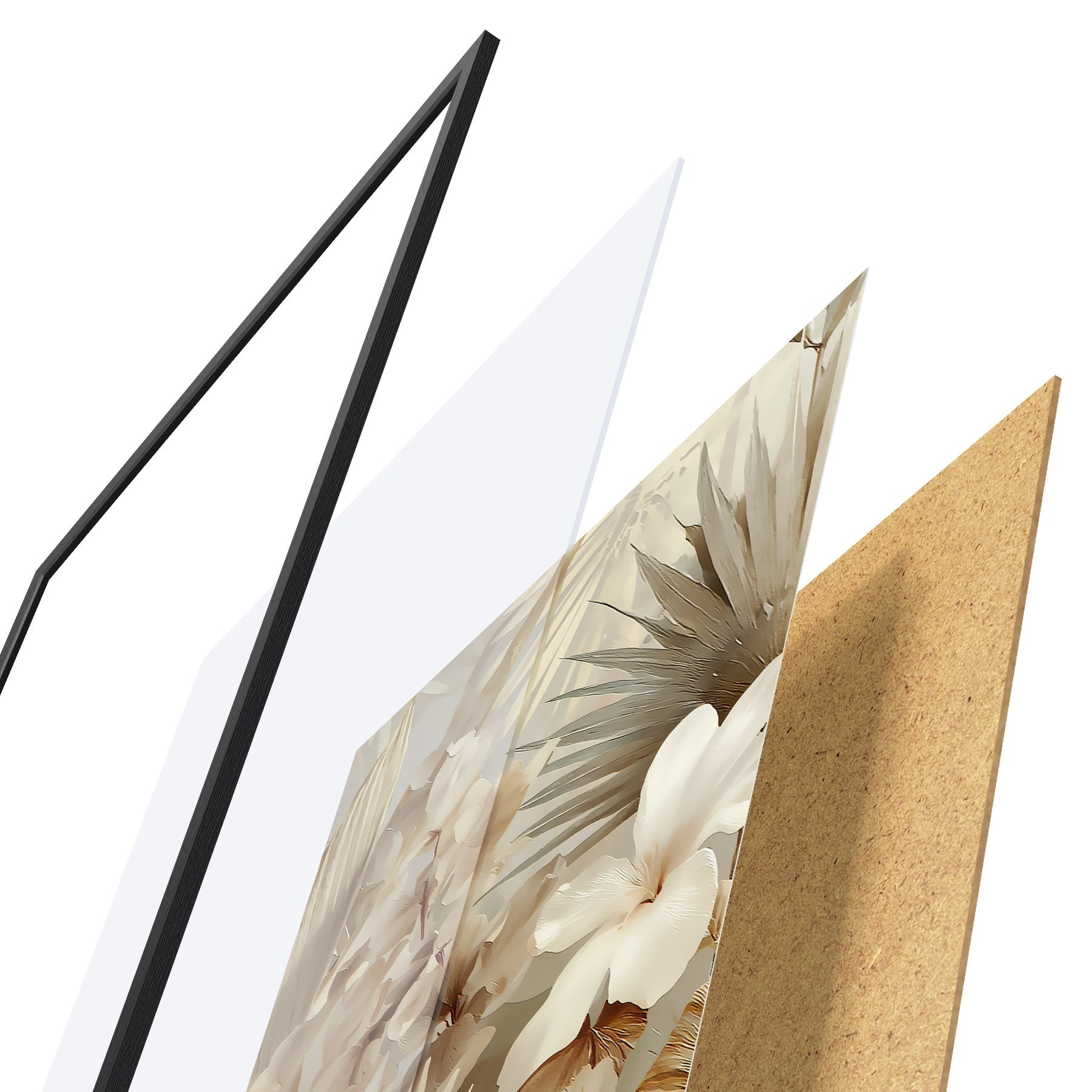 Plakát se skládá z rámu, plexiskla, tištěného obrazu a dřevotřískového podkladu. Díky úchytům na zadní straně lze plakát ihned zavěsit na zeď.