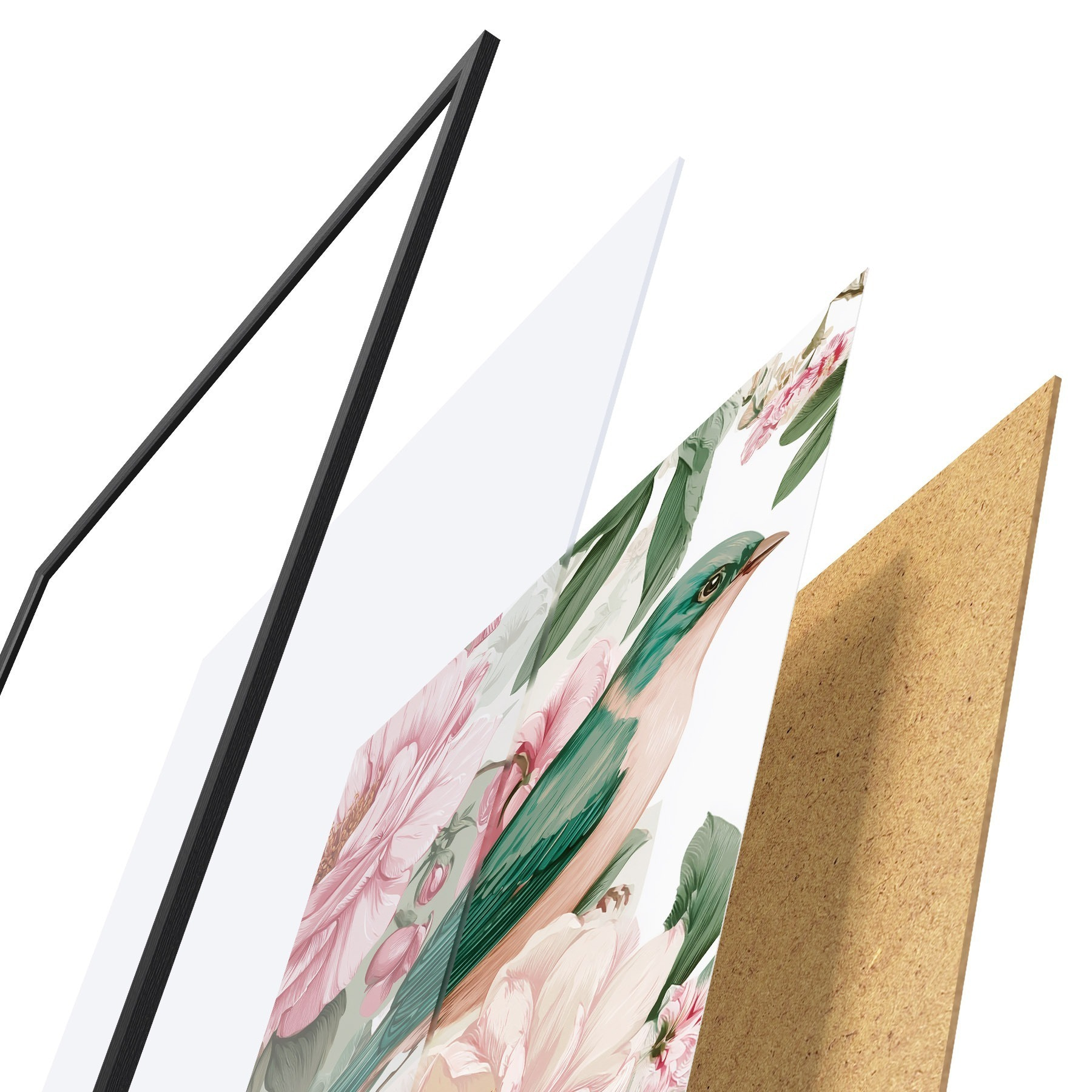 Plakát se skládá z rámu, plexiskla, tištěného obrazu a dřevotřískového podkladu. Díky úchytům na zadní straně lze plakát ihned zavěsit na zeď.