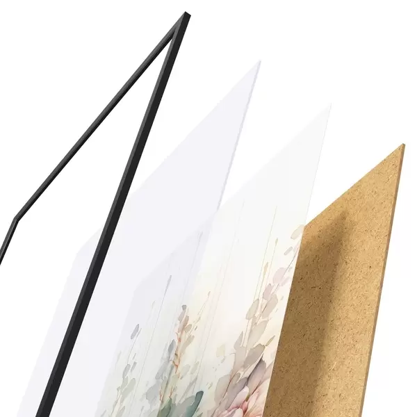 Plakát se skládá z rámu, plexiskla, tištěného obrazu a dřevotřískového podkladu. Díky úchytům na zadní straně lze plakát ihned zavěsit na zeď.