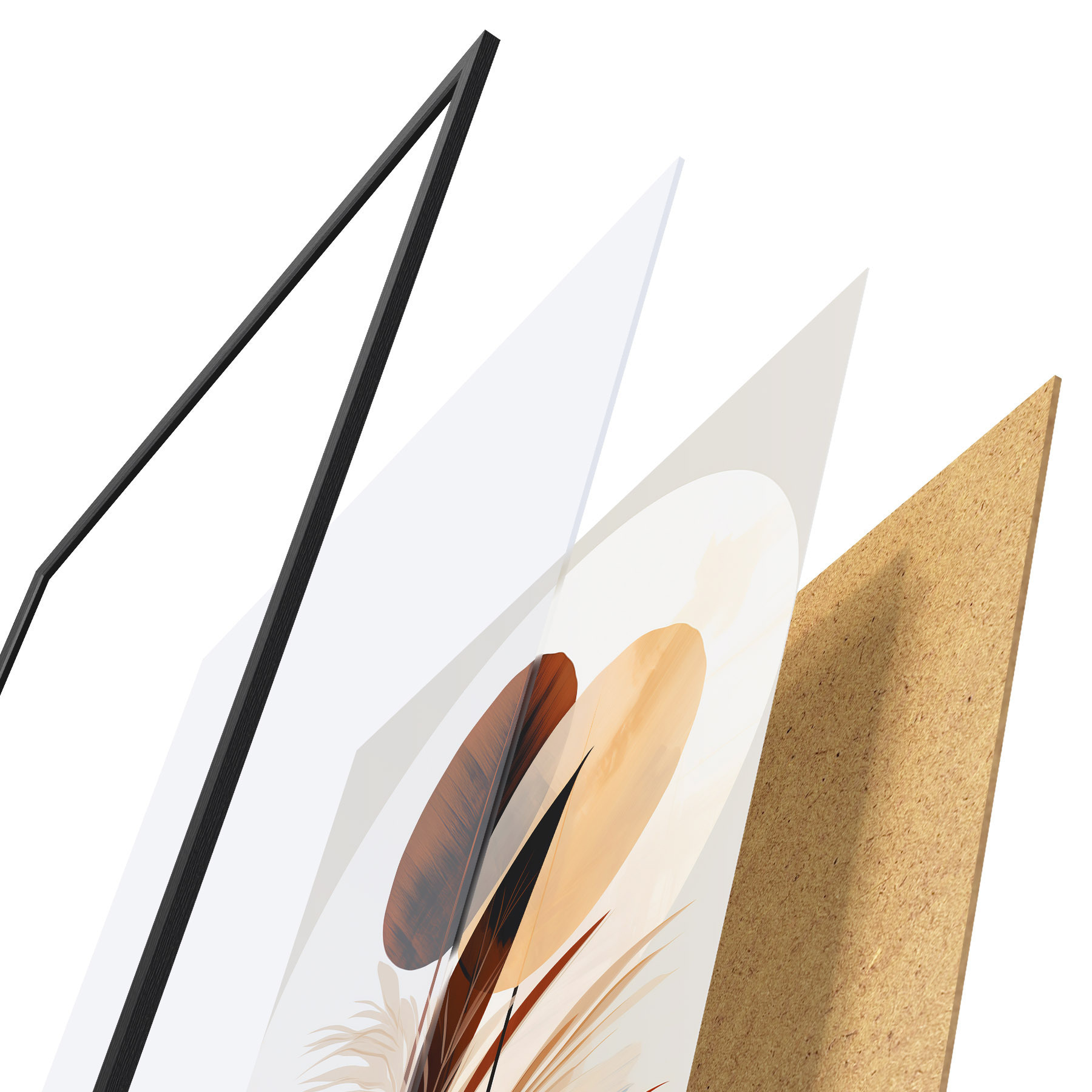 Plakát se skládá z rámu, plexiskla, tištěného obrazu a dřevotřískového podkladu. Díky úchytům na zadní straně lze plakát ihned zavěsit na zeď.