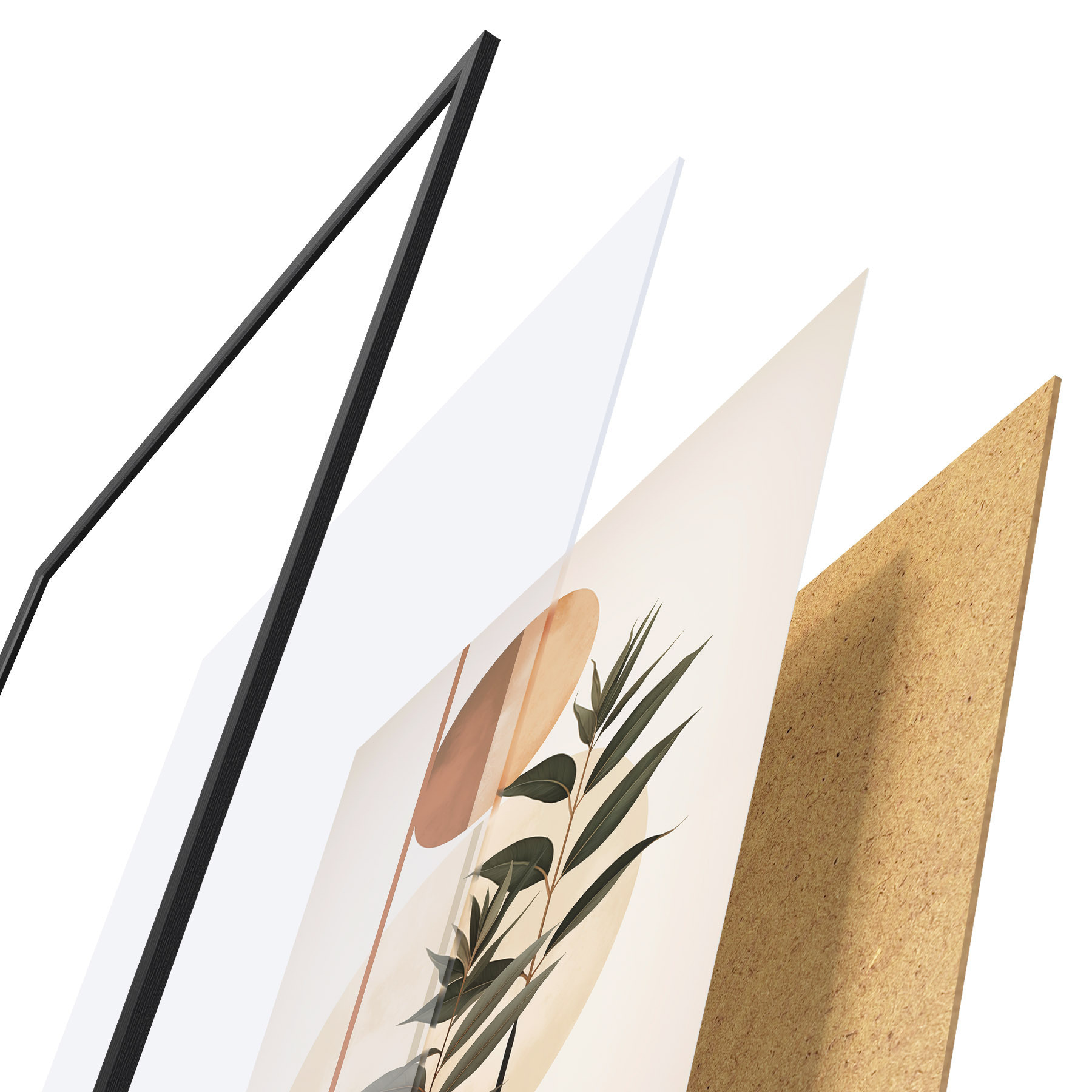 Plakát se skládá z rámu, plexiskla, tištěného obrazu a dřevotřískového podkladu. Díky úchytům na zadní straně lze plakát ihned zavěsit na zeď.