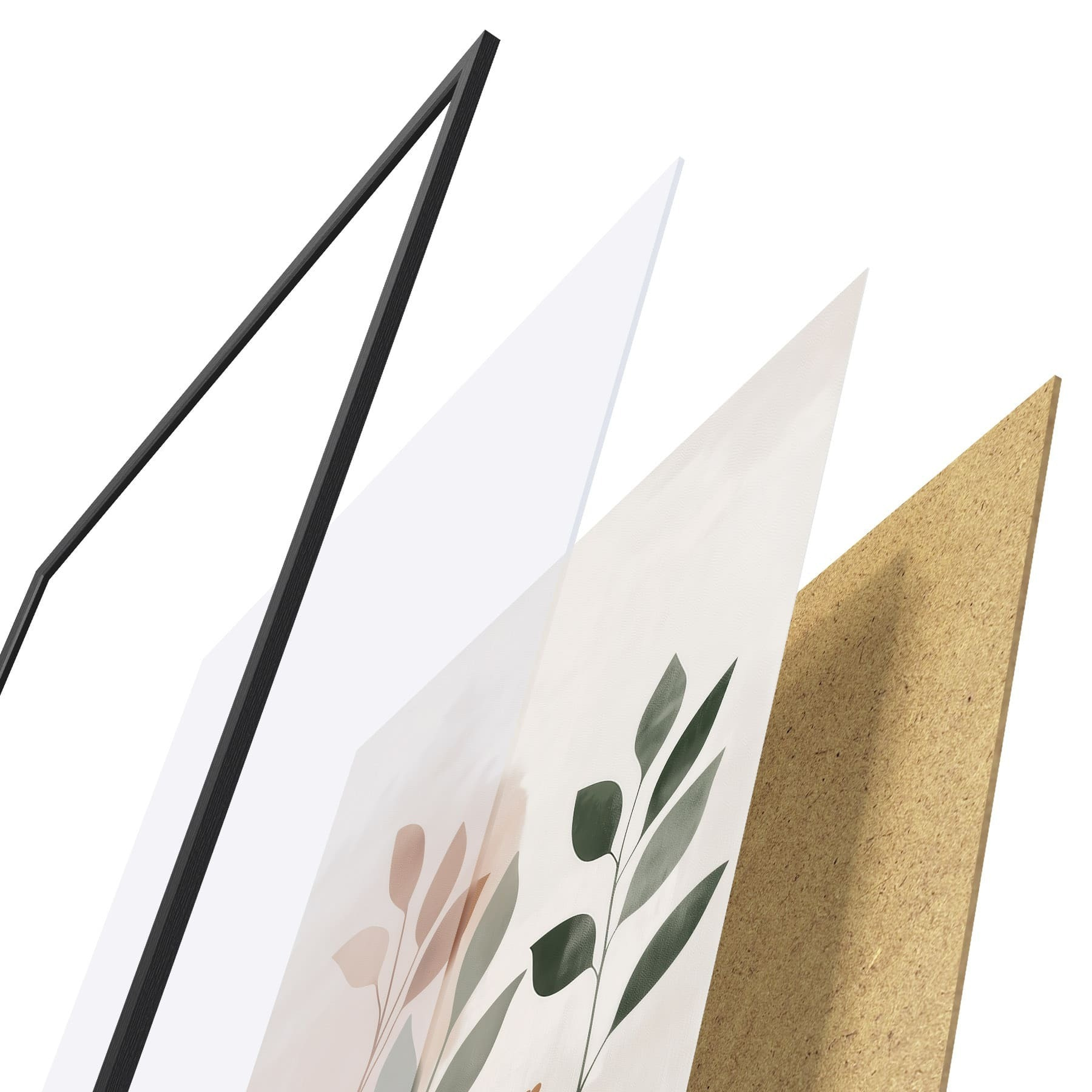 Plakát se skládá z rámu, plexiskla, tištěného obrazu a dřevotřískového podkladu. Díky úchytům na zadní straně lze plakát ihned zavěsit na zeď.