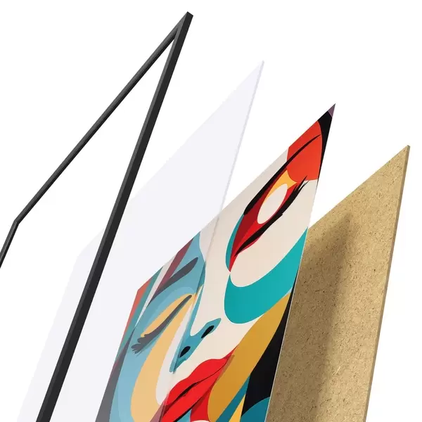 Plakát se skládá z rámu, plexiskla, tištěného obrazu a dřevotřískového podkladu. Díky úchytům na zadní straně lze plakát ihned zavěsit na zeď.
