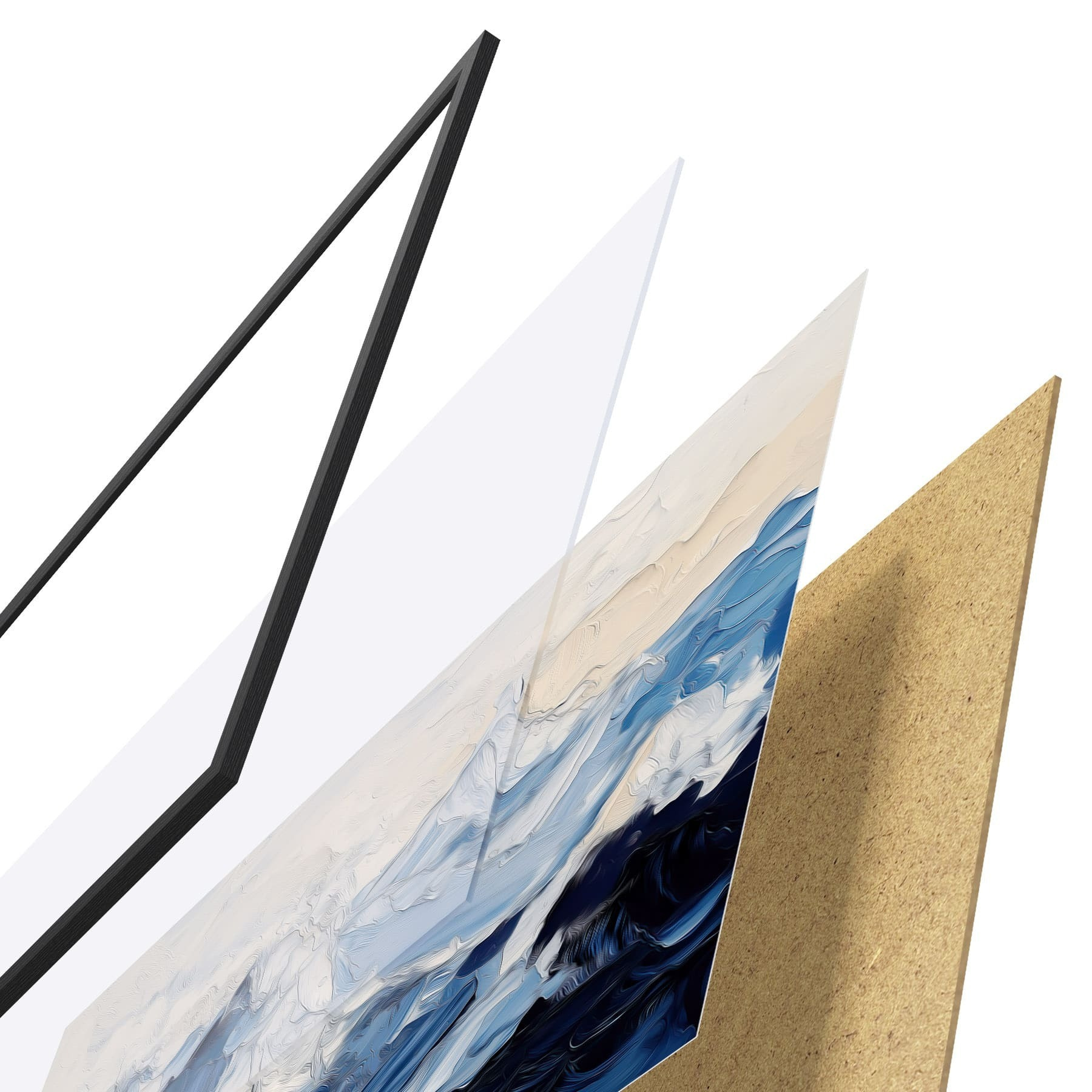 Plakát se skládá z rámu, plexiskla, tištěného obrazu a dřevotřískového podkladu. Díky úchytům na zadní straně lze plakát ihned zavěsit na zeď.