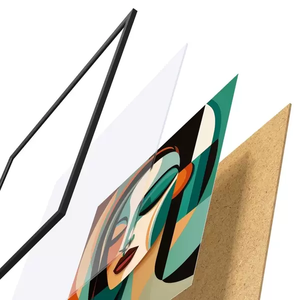 Plakát se skládá z rámu, plexiskla, tištěného obrazu a dřevotřískového podkladu. Díky úchytům na zadní straně lze plakát ihned zavěsit na zeď.