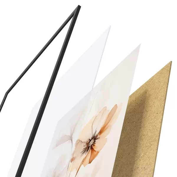 Plakát se skládá z rámu, plexiskla, tištěného obrazu a dřevotřískového podkladu. Díky úchytům na zadní straně lze plakát ihned zavěsit na zeď.