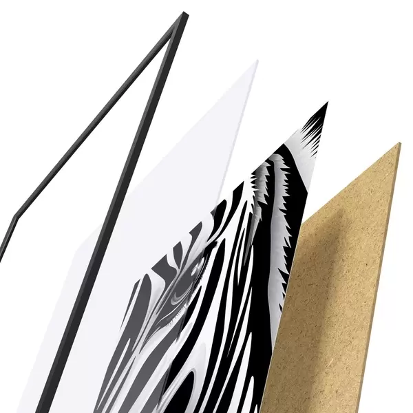 Plakát se skládá z rámu, plexiskla, tištěného obrazu a dřevotřískového podkladu. Díky úchytům na zadní straně lze plakát ihned zavěsit na zeď.