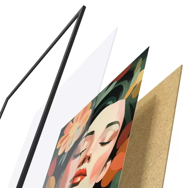 Plakát se skládá z rámu, plexiskla, tištěného obrazu a dřevotřískového podkladu. Díky úchytům na zadní straně lze plakát ihned zavěsit na zeď.