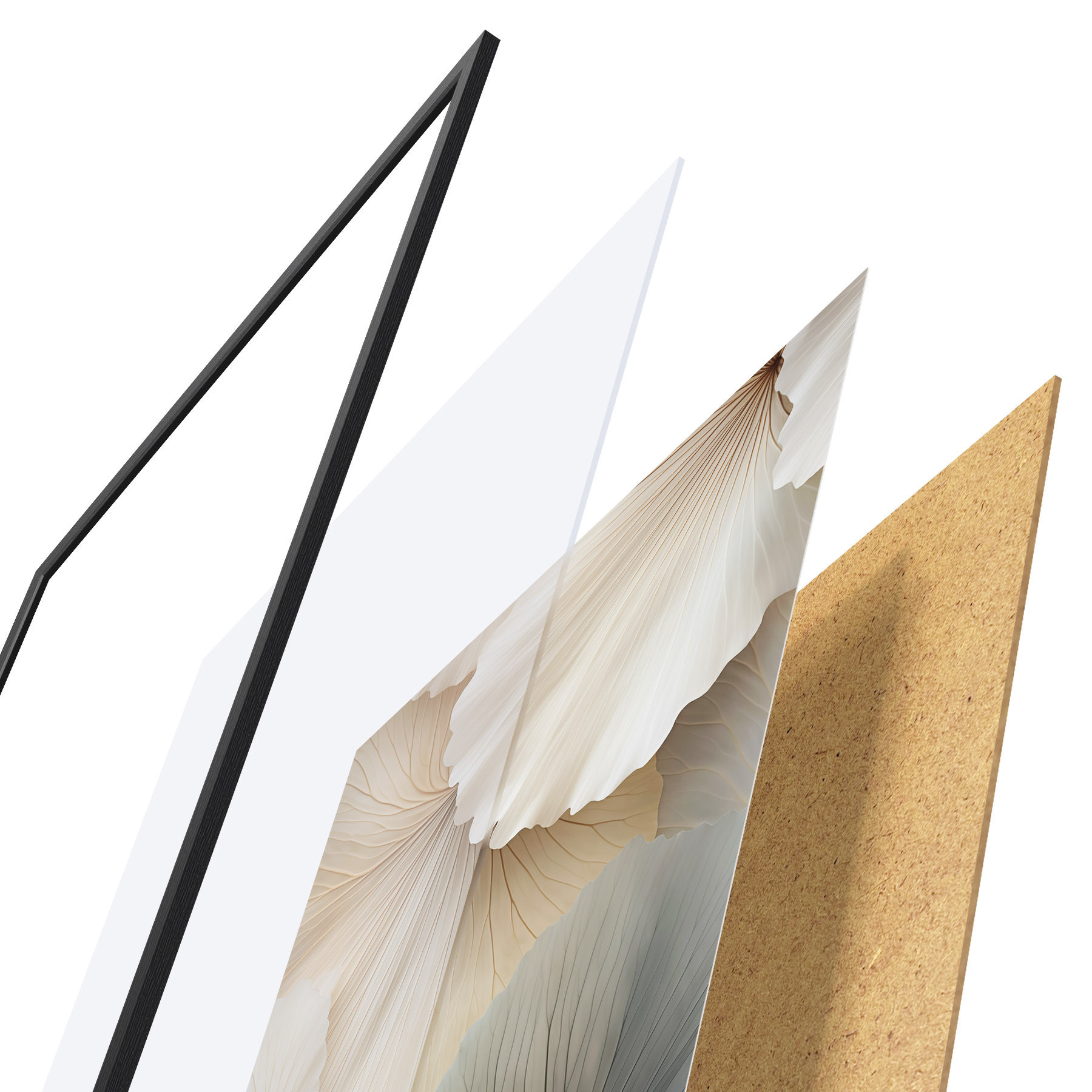 Plakát se skládá z rámu, plexiskla, tištěného obrazu a dřevotřískového podkladu. Díky úchytům na zadní straně lze plakát ihned zavěsit na zeď.
