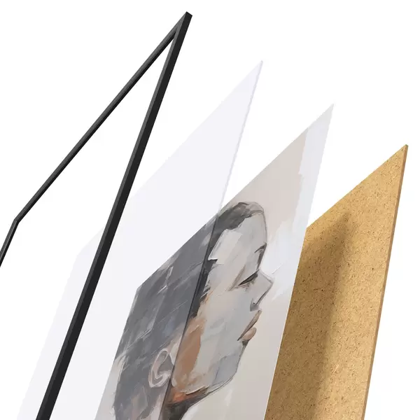 Plakát se skládá z rámu, plexiskla, tištěného obrazu a dřevotřískového podkladu. Díky úchytům na zadní straně lze plakát ihned zavěsit na zeď.