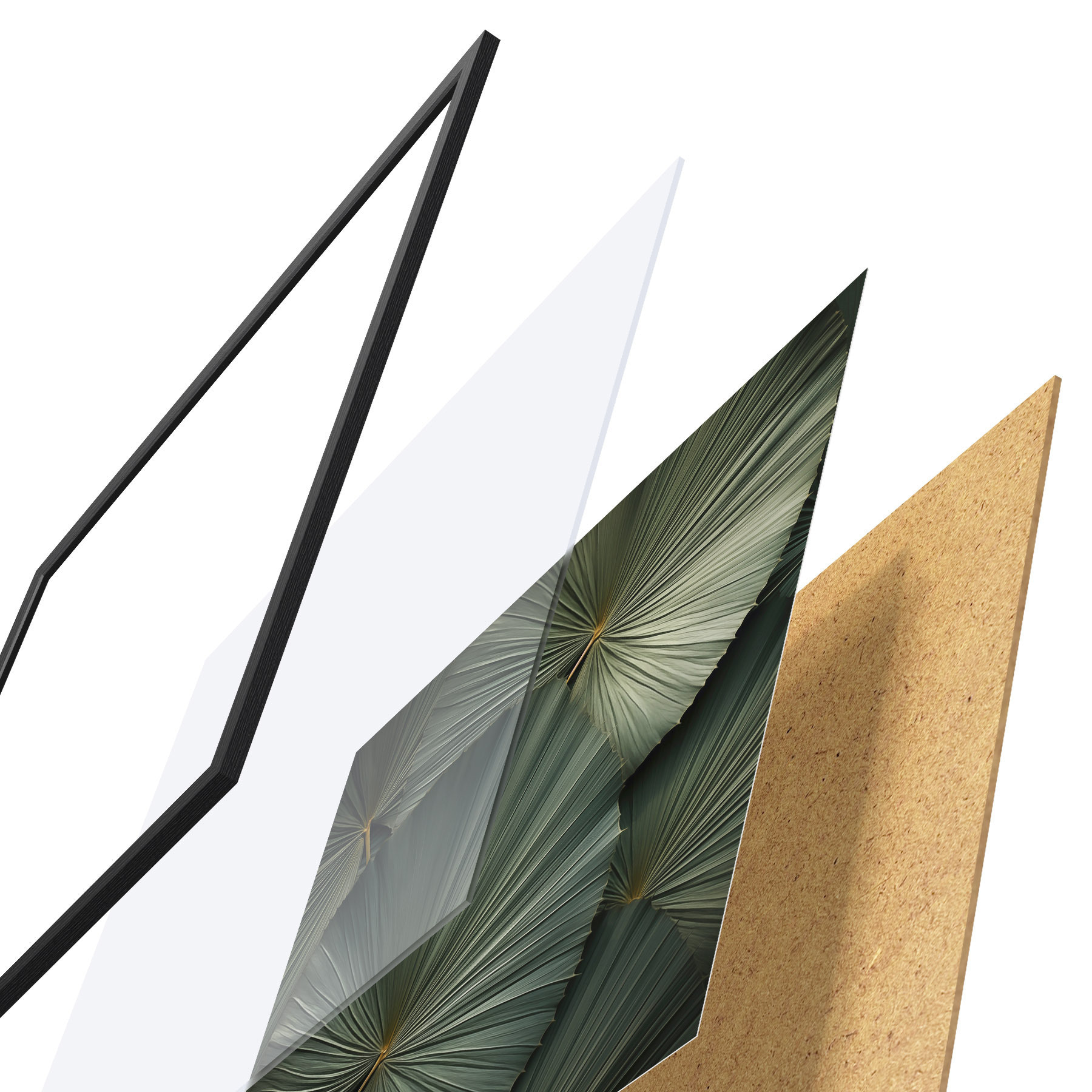 Plakát se skládá z rámu, plexiskla, tištěného obrazu a dřevotřískového podkladu. Díky úchytům na zadní straně lze plakát ihned zavěsit na zeď.