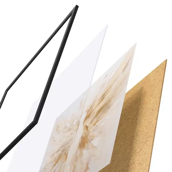Plakát se skládá z rámu, plexiskla, tištěného obrazu a dřevotřískového podkladu. Díky úchytům na zadní straně lze plakát ihned zavěsit na zeď.