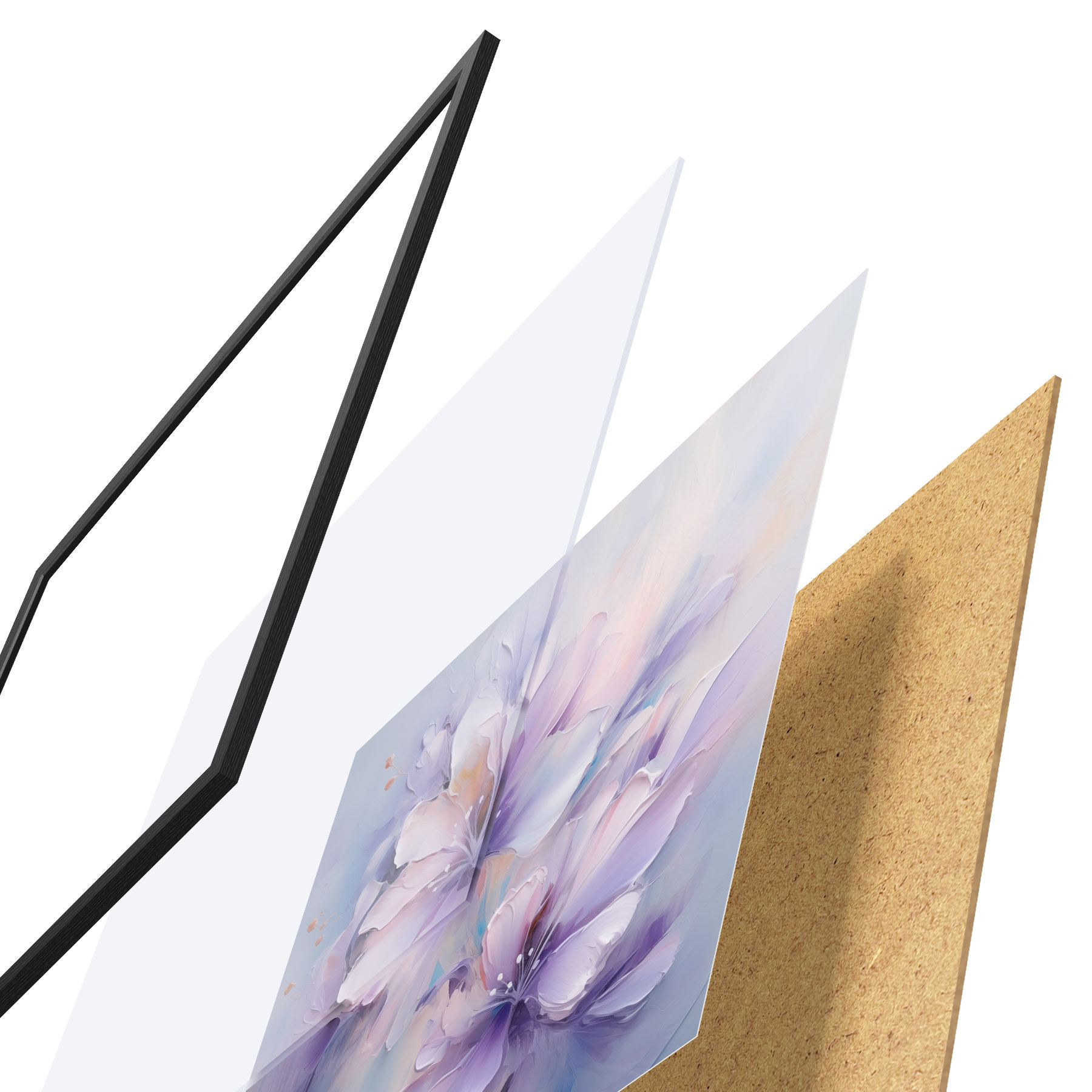 Plakát se skládá z rámu, plexiskla, tištěného obrazu a dřevotřískového podkladu. Díky úchytům na zadní straně lze plakát ihned zavěsit na zeď.