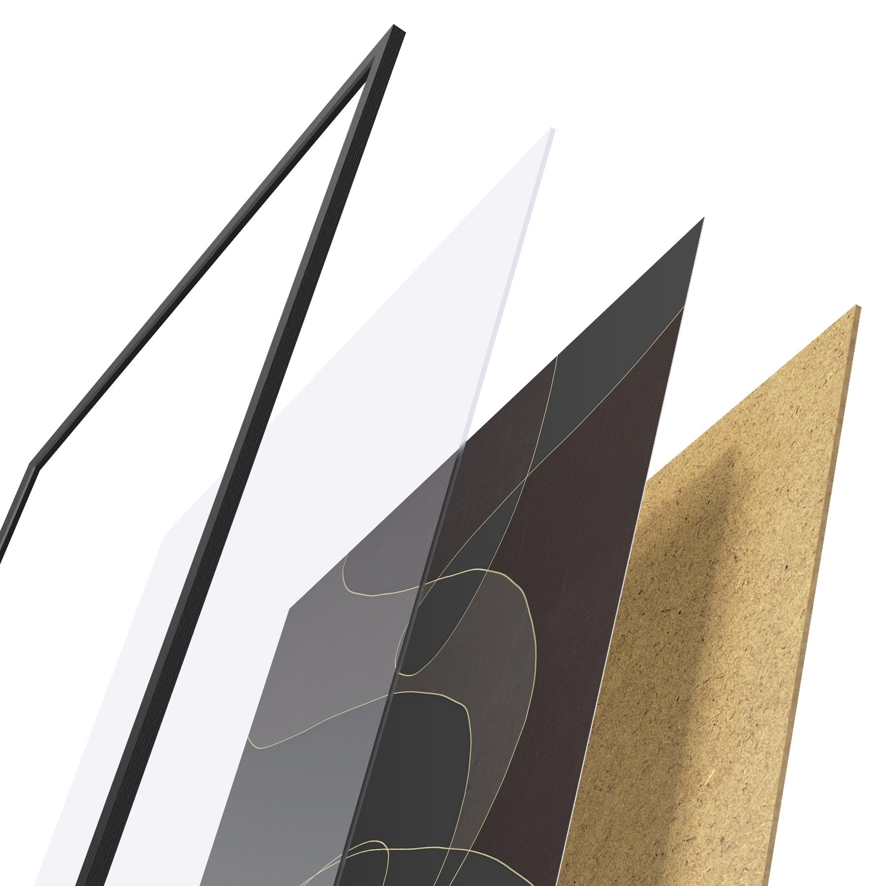 Plakát se skládá z rámu, plexiskla, tištěného obrazu a dřevotřískového podkladu. Díky úchytům na zadní straně lze plakát ihned zavěsit na zeď.