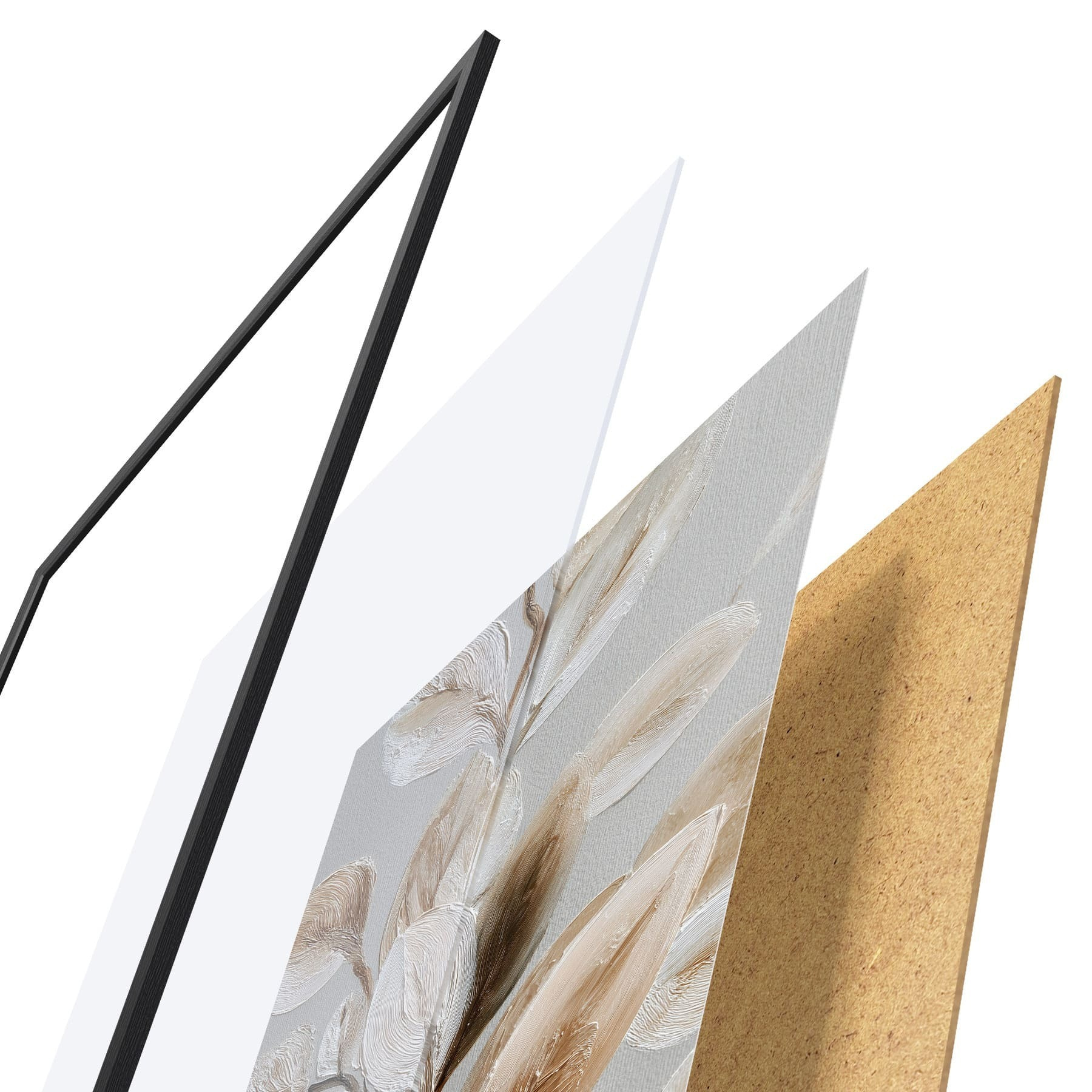 Plakát se skládá z rámu, plexiskla, tištěného obrazu a dřevotřískového podkladu. Díky úchytům na zadní straně lze plakát ihned zavěsit na zeď.
