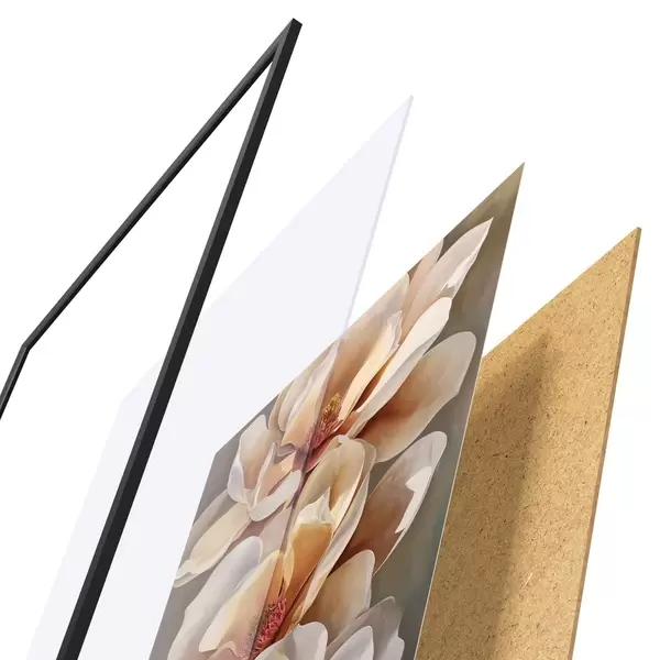 Plakát se skládá z rámu, plexiskla, tištěného obrazu a dřevotřískového podkladu. Díky úchytům na zadní straně lze plakát ihned zavěsit na zeď.