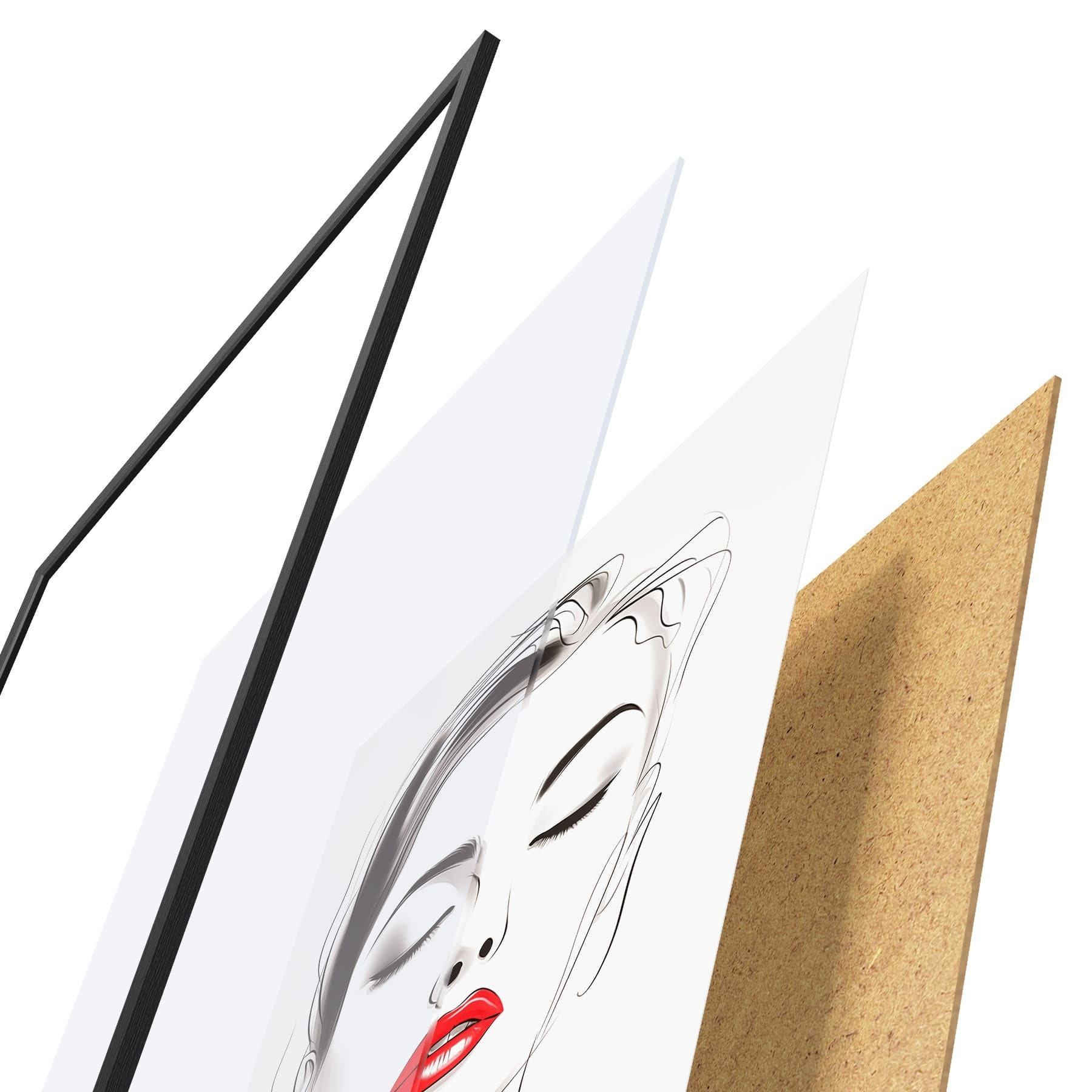 Plakát se skládá z rámu, plexiskla, tištěného obrazu a dřevotřískového podkladu. Díky úchytům na zadní straně lze plakát ihned zavěsit na zeď.