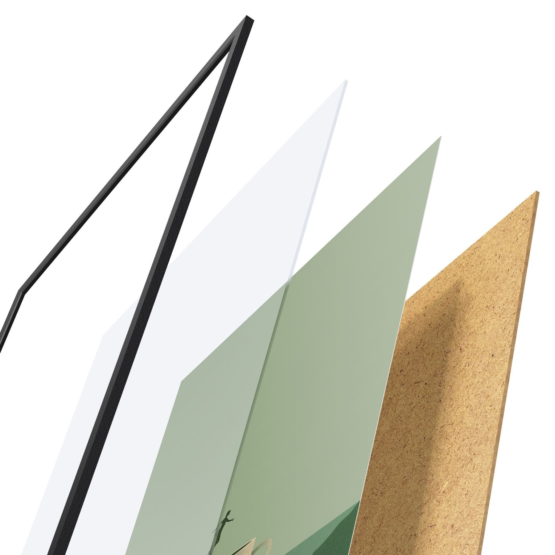 Plakát se skládá z rámu, plexiskla, tištěného obrazu a dřevotřískového podkladu. Díky úchytům na zadní straně lze plakát ihned zavěsit na zeď.