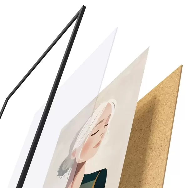 Plakát se skládá z rámu, plexiskla, tištěného obrazu a dřevotřískového podkladu. Díky úchytům na zadní straně lze plakát ihned zavěsit na zeď.