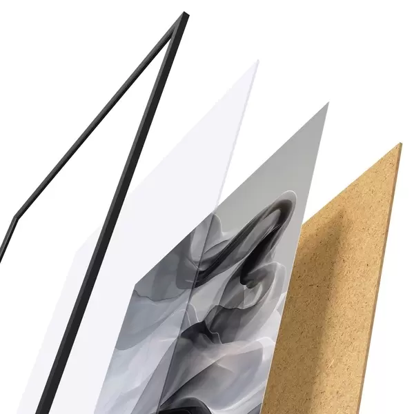 Plakát se skládá z rámu, plexiskla, tištěného obrazu a dřevotřískového podkladu. Díky úchytům na zadní straně lze plakát ihned zavěsit na zeď.