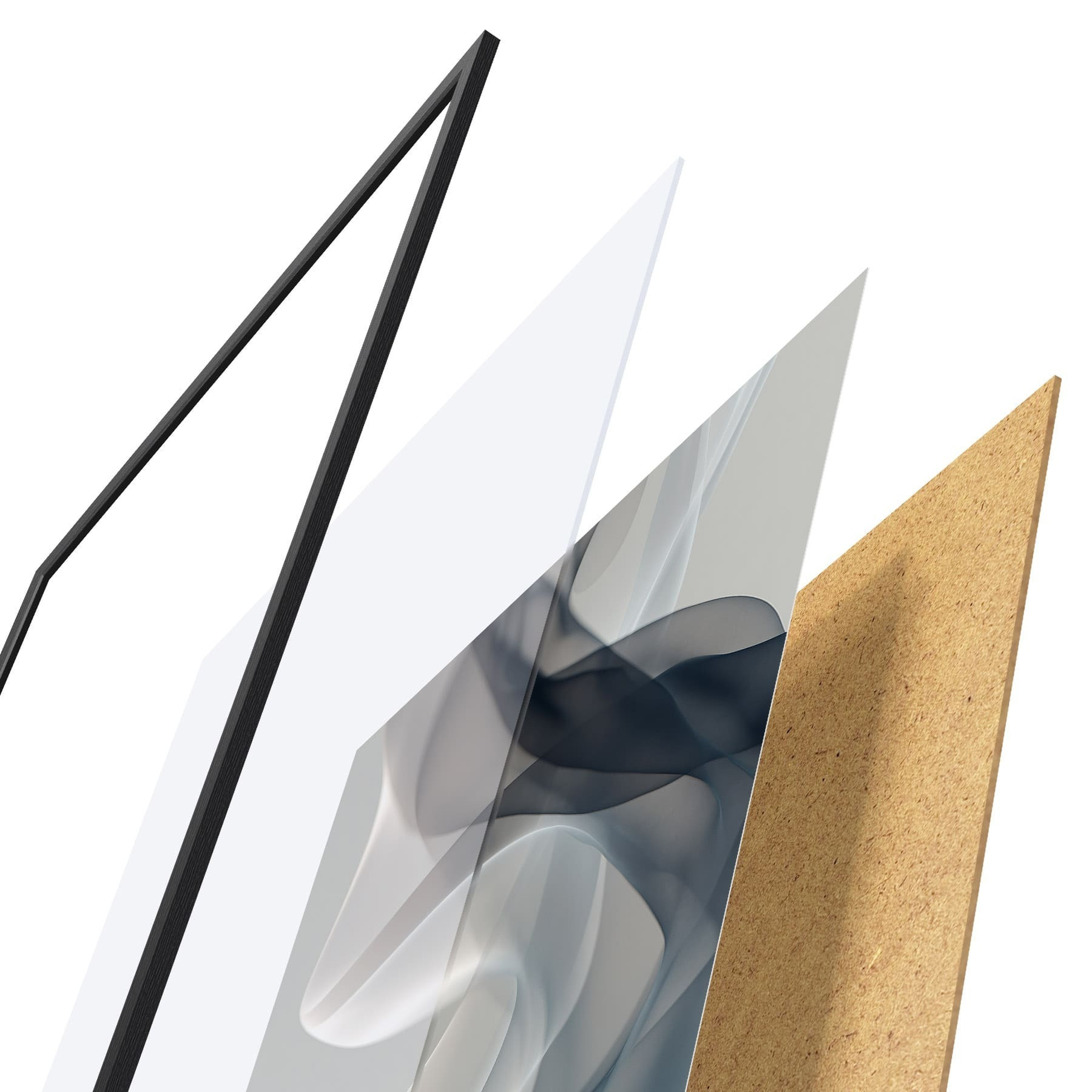 Plakát se skládá z rámu, plexiskla, tištěného obrazu a dřevotřískového podkladu. Díky úchytům na zadní straně lze plakát ihned zavěsit na zeď.