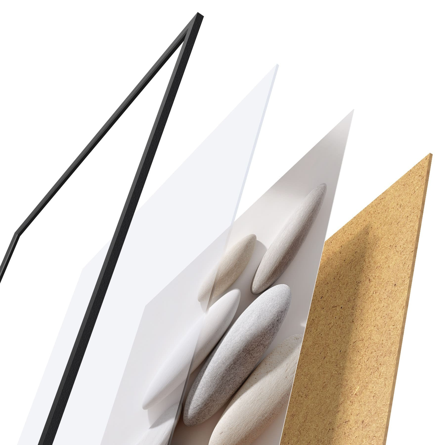 Plakát se skládá z rámu, plexiskla, tištěného obrazu a dřevotřískového podkladu. Díky úchytům na zadní straně lze plakát ihned zavěsit na zeď.