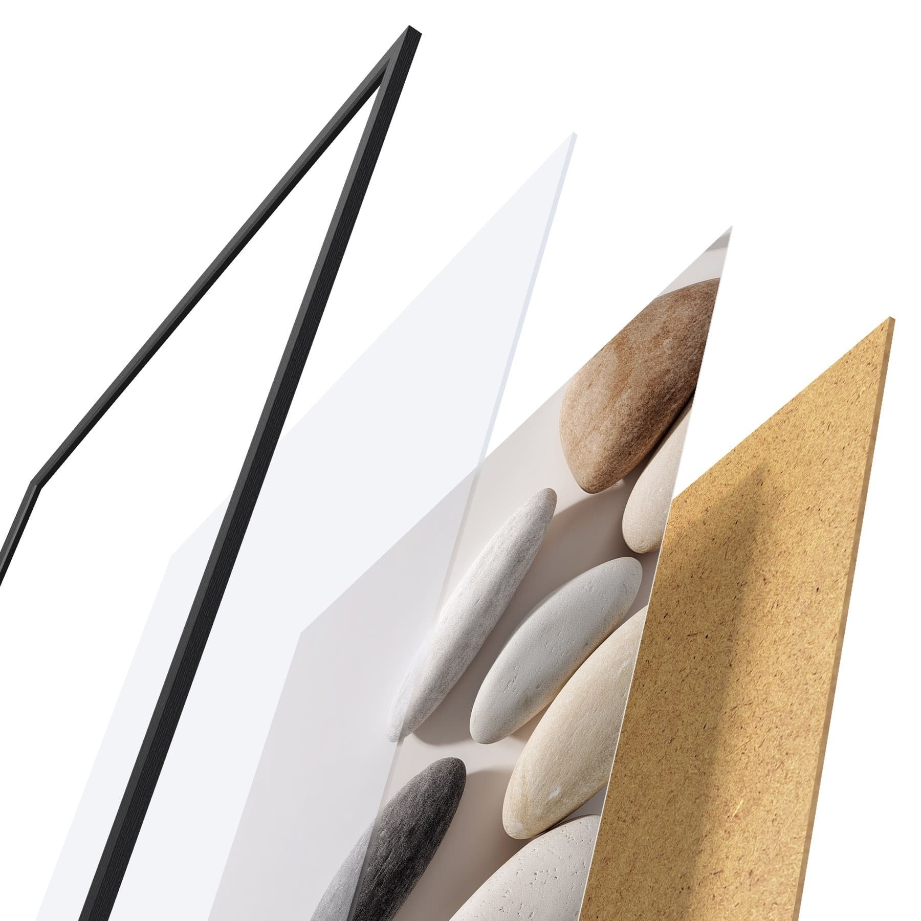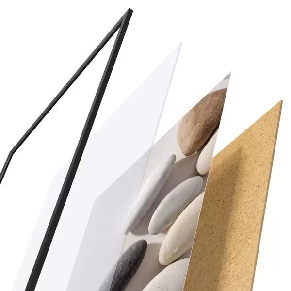 Plakát se skládá z rámu, plexiskla, tištěného obrazu a dřevotřískového podkladu. Díky úchytům na zadní straně lze plakát ihned zavěsit na zeď.