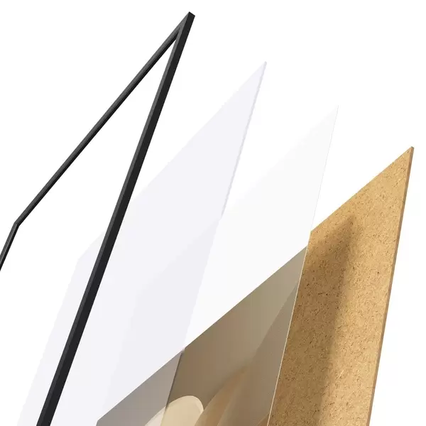 Plakát se skládá z rámu, plexiskla, tištěného obrazu a dřevotřískového podkladu. Díky úchytům na zadní straně lze plakát ihned zavěsit na zeď.