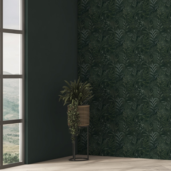 Tapety Tmavě zelené pozadí s ozdobnými květinami a listy