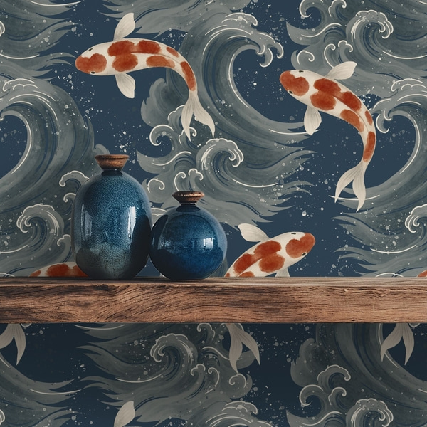 Tapety Koi ryby plavající mezi dramatickými oceánskými vlnami
