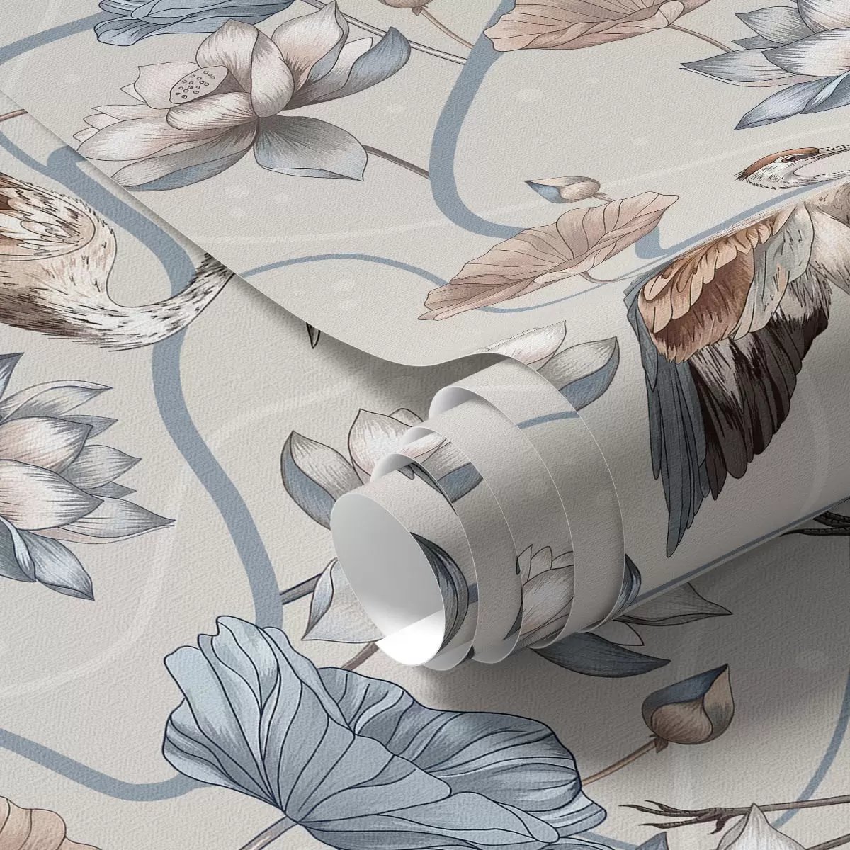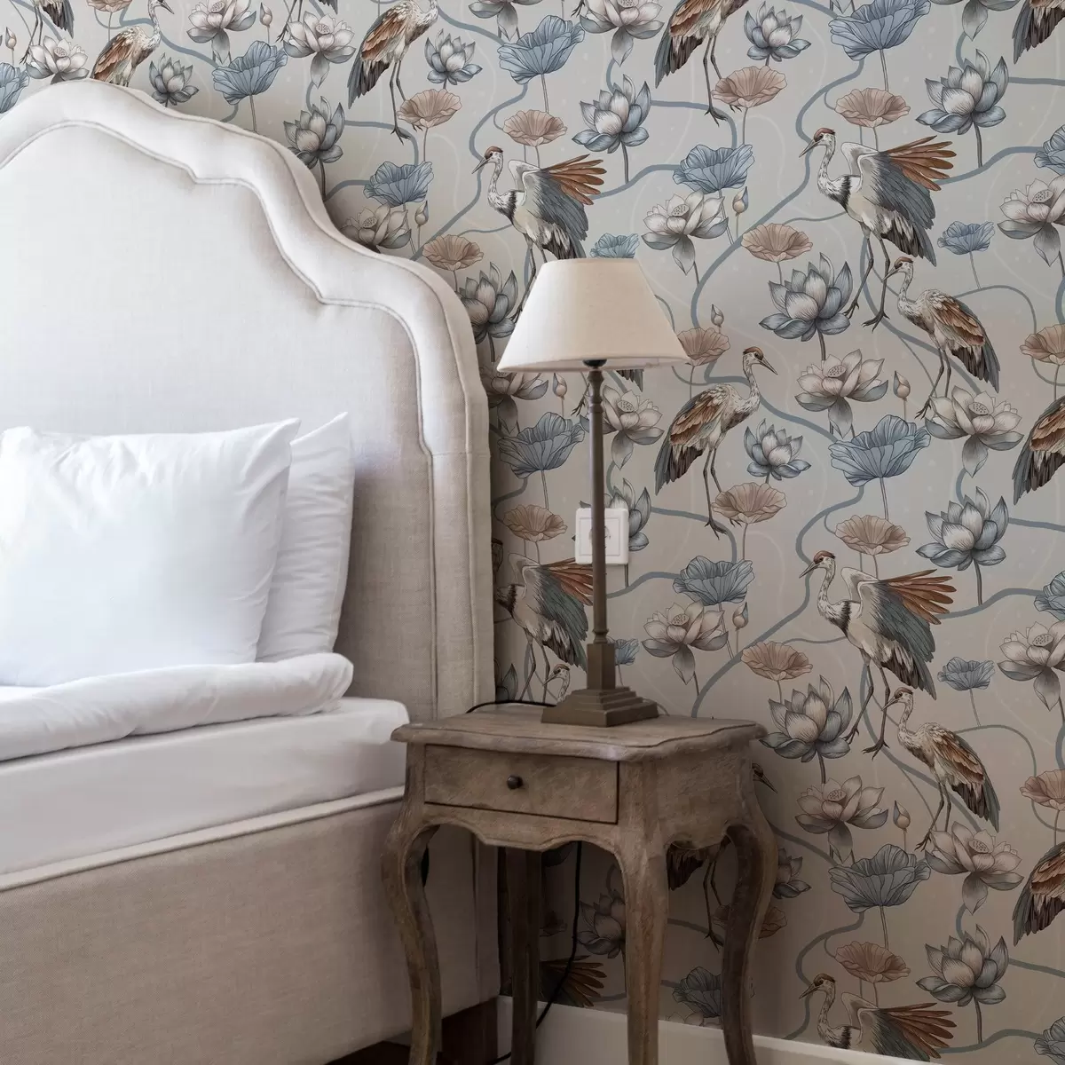Tapeta Kompozice s jeřáby a lotosy v pastelových barvách Nr. a00064