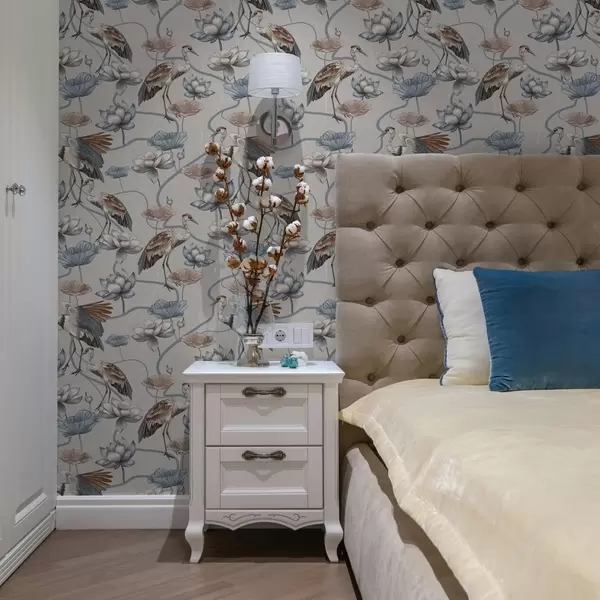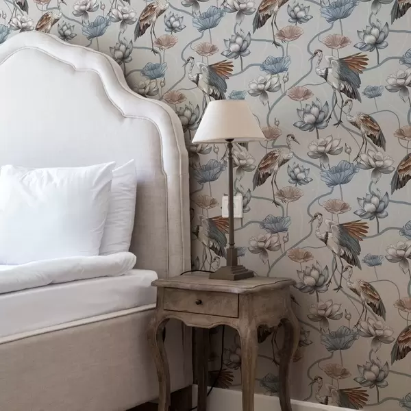 Tapeta Kompozice s jeřáby a lotosy v pastelových barvách Nr. a00064