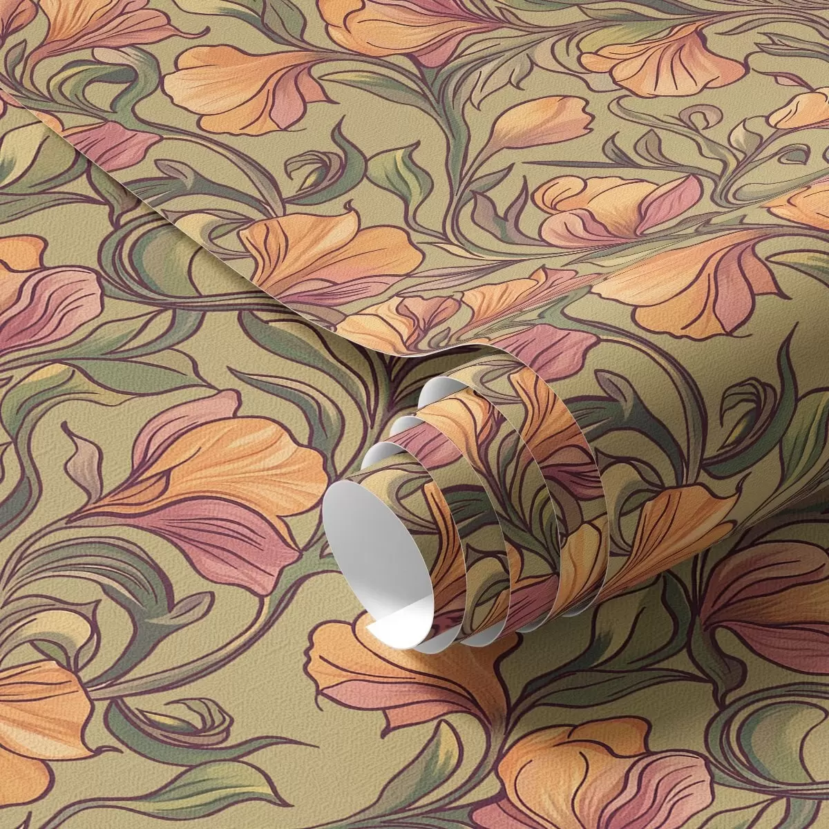 Tapeta Světlé kroucená stonky s listy a květy Nr. a00074