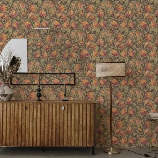 Tapeta Světlé kroucená stonky s listy a květy Nr. a00074