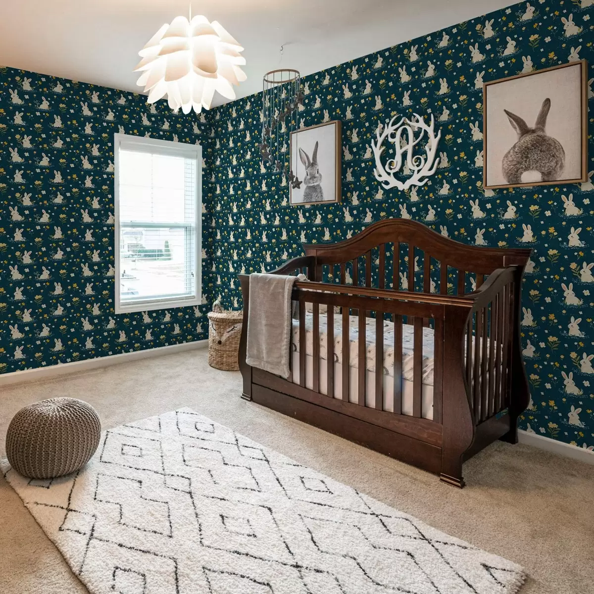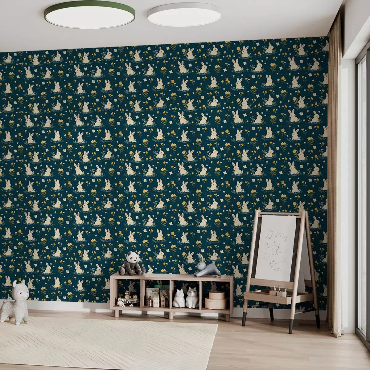 Tapeta Králíci v trávě a květinách na tmavém pozadí Nr. a00080