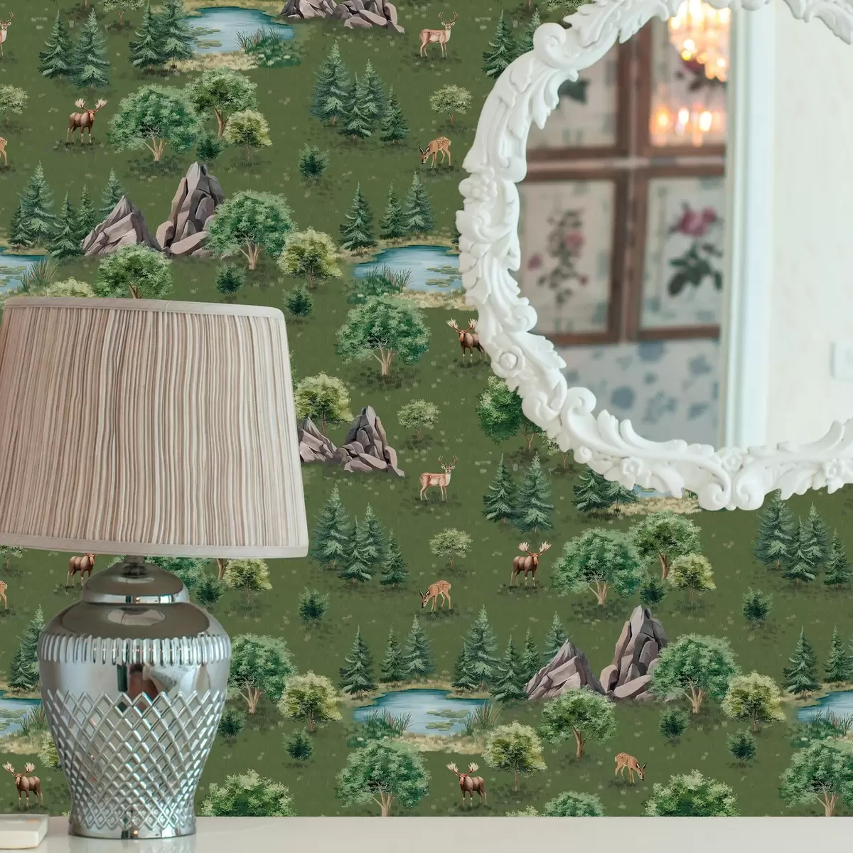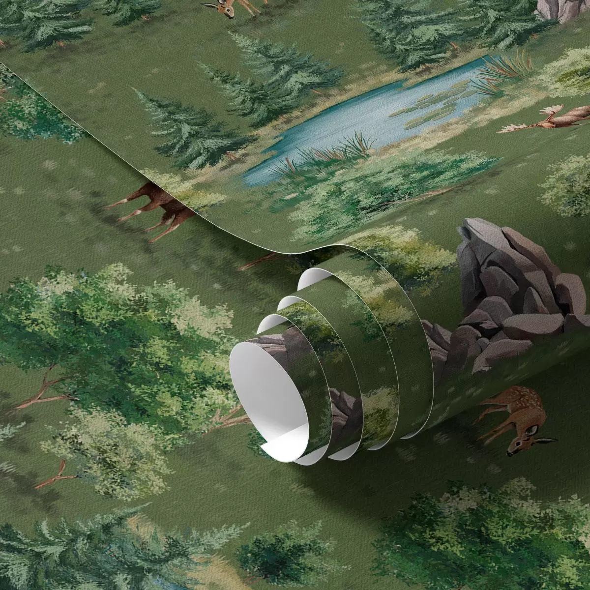 Tapeta Jelen u jezera se stromy a kameny Nr. a00086