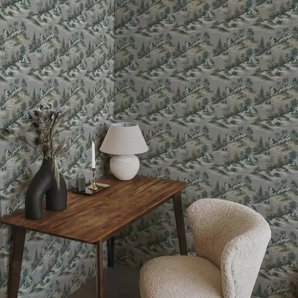 Tapeta Stromy na horských římsách s kameny na šedém pozadí Nr. a00090v1