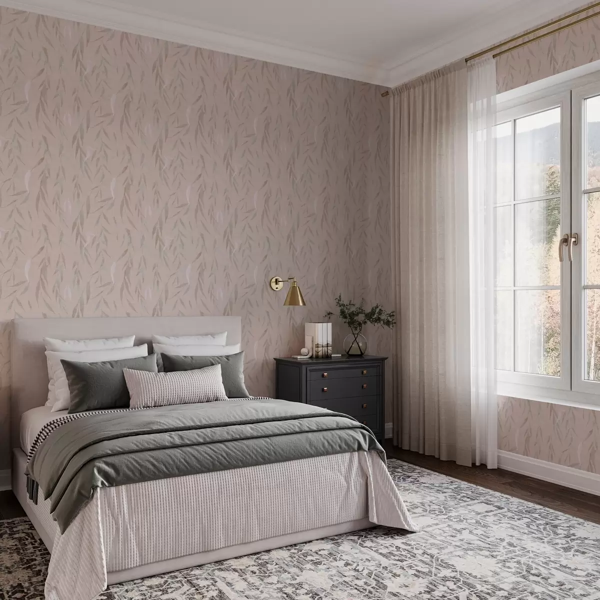 Tapeta Visící větve s listy na béžovém pozadí Nr. a00095v1