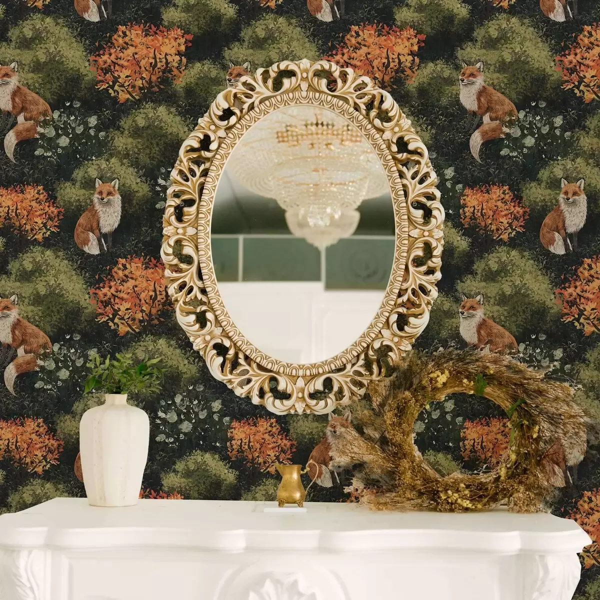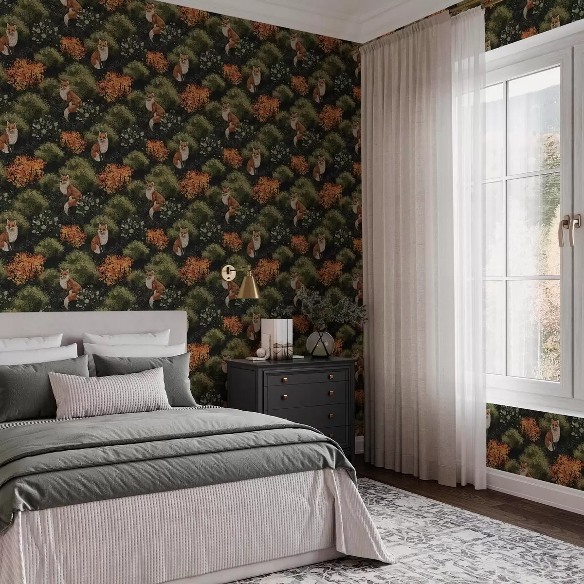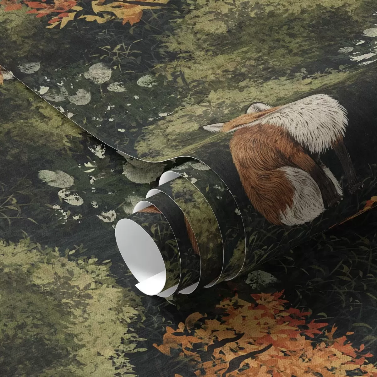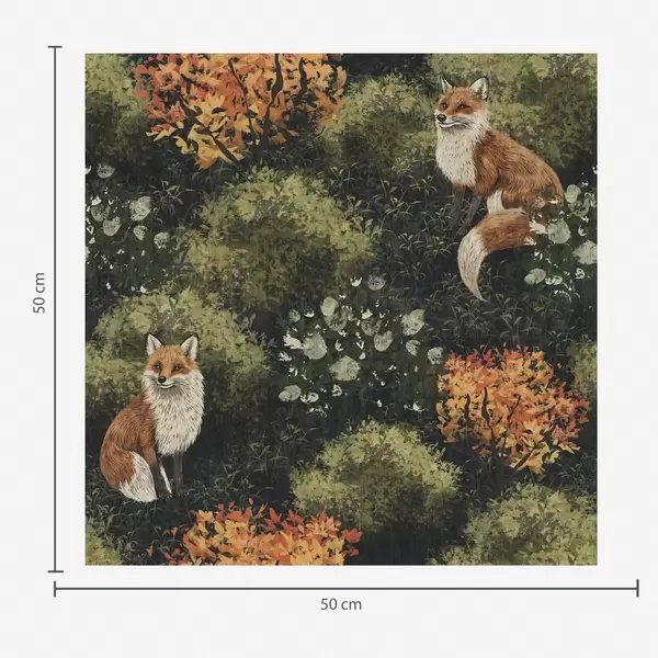 Tapeta Lišky v lese s podzimními keři na tmavém pozadí Nr. a00101